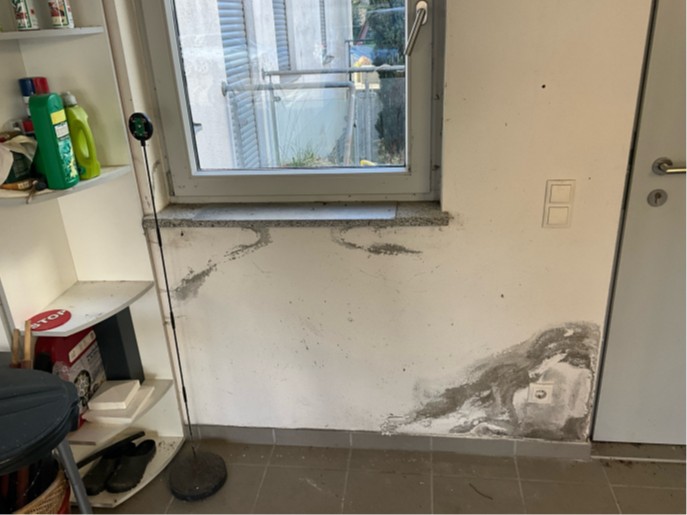 Das Einfamilienhaus in Amendingen bei Memmingen, errichtet im Jahr 2003, zeigte deutliche Anzeichen von Feuchtigkeit und Schimmel an den Garagenwänden. Die Doppelgarage, die einen Durchgang zum Garten und einen beheizten Windfang umfasst, war stets geschlossen und schlecht belüftet. Besonders im Winter verschlimmerte sich die Feuchtigkeitsproblematik, was zu einer intensiven Schimmelbildung führte. Der Zustand der Garage beeinträchtigte nicht nur das ästhetische Erscheinungsbild, sondern stellte auch ein potenzielles Risiko für die Gebäudesubstanz dar. Die Bauweise der Garage, mit schwer zugänglichen Außenwänden, erforderte eine durchdachte Sanierungslösung. Die Bausubstanz war generell gut, doch die Feuchtigkeit in den Wänden musste dringend angegangen werden, um den Wert der Immobilie zu erhalten.