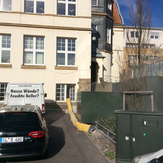 Je nach Ursache der Feuchte sind unterschiedliche Abdichtungsmaßnahmen notwendig. Gegen aufsteigende Feuchte hilft beispielsweise die ISOTEC-Horizontalsperre, bei der unser Spezialparaffin in die Wand injiziert wird. So wird ein Sperrriegel gebildet, der das kapillare Aufsteigen von Feuchte dauerhaft und sicher verhindert. Eine fehlende oder defekte Horizontalabdichtung kann zur Durchfeuchtung der Wände über die Mauerwerksaufstandsfläche führen.