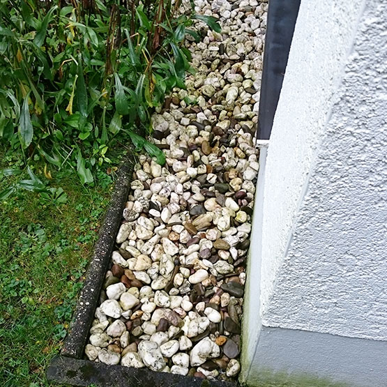 Das Einfamilienhaus wurde gegen seitlich eindringende Feuchtigkeit geschützt