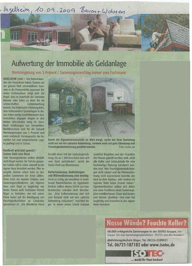 Feuchtigkeitssanierung ist Vertrauenssache "Wochenblatt Ingelheim", 09. Novemver 2006