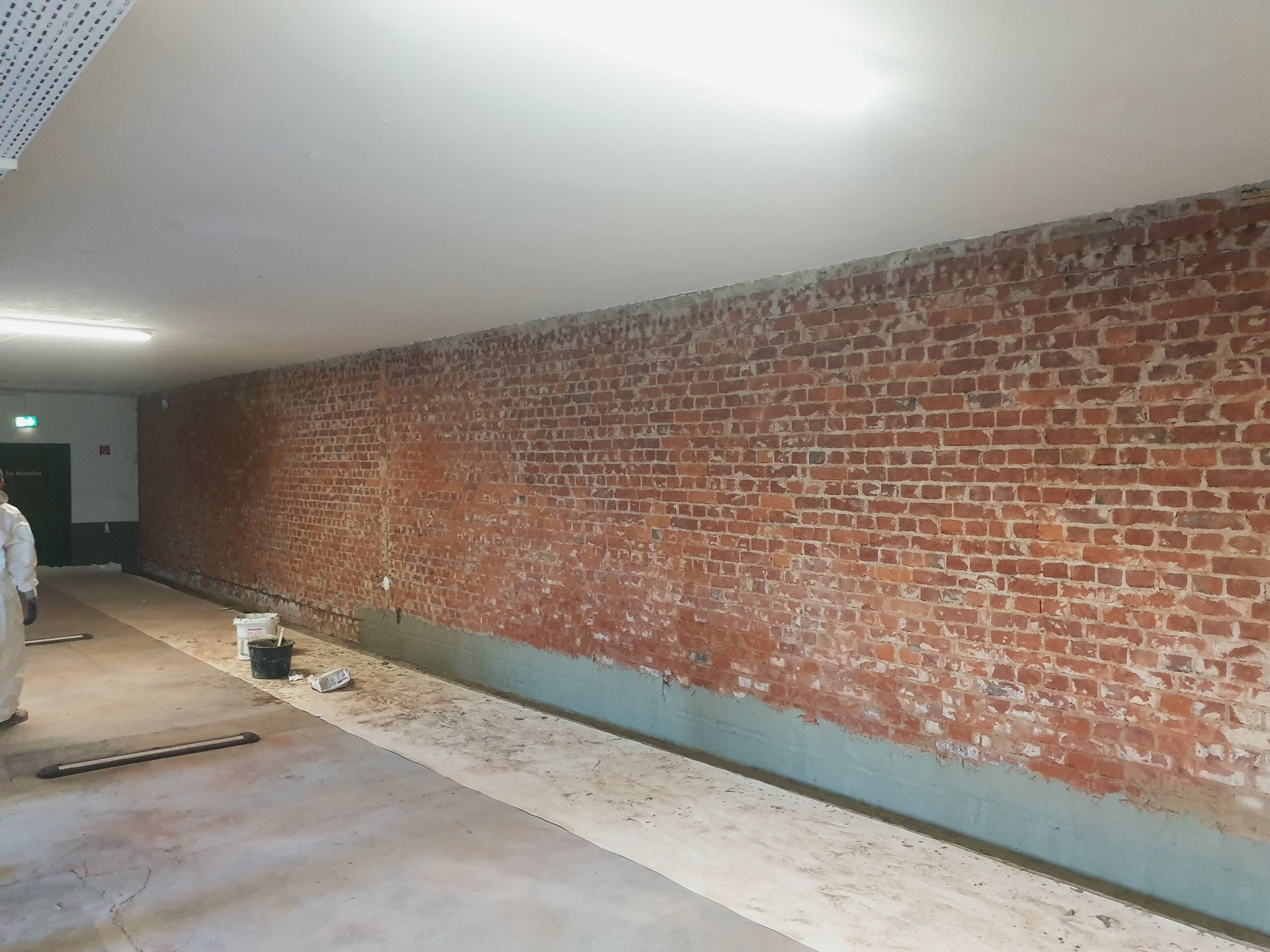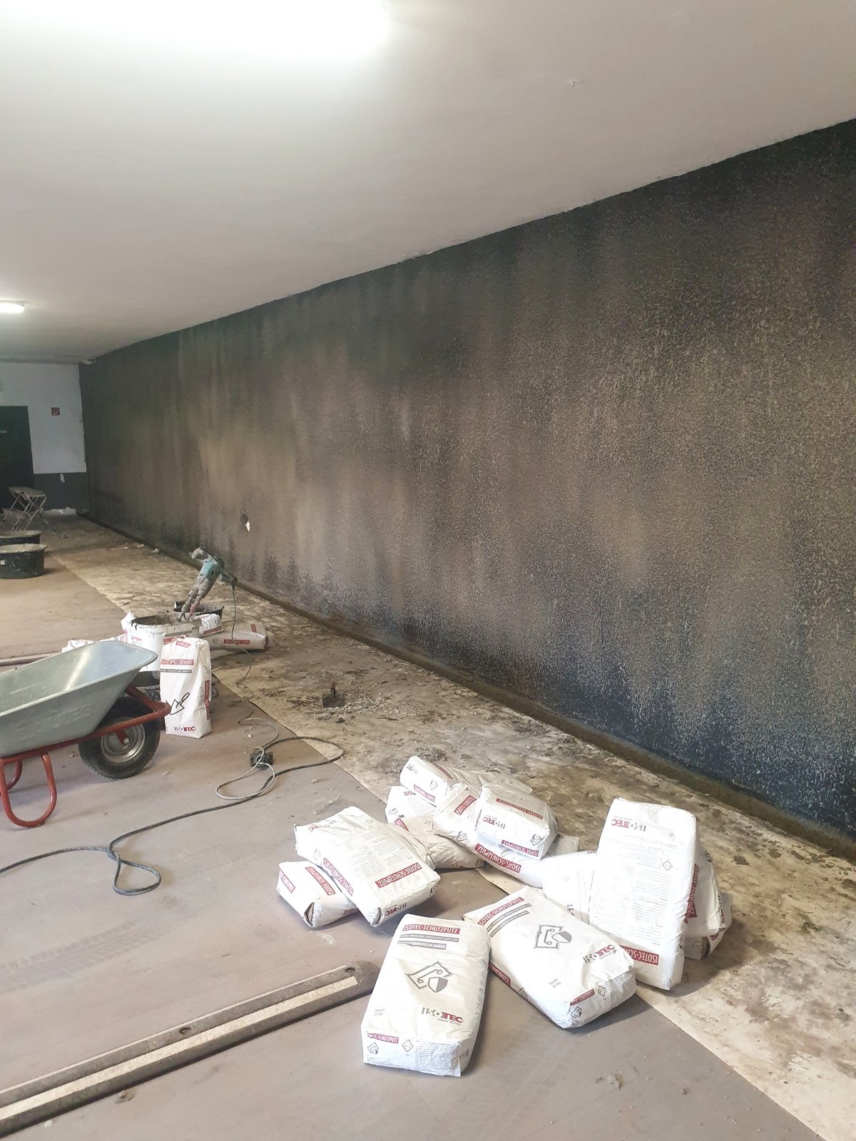 Die Sanierung des Parkdecks in Dortmund erforderte eine präzise und effiziente Lösung. Die ISOTEC-Innenabdichtung wurde als das geeignete Verfahren gewählt, um die Feuchtigkeitsschäden zu beheben. Zunächst erfolgte eine gründliche Untergrundvorbereitung. Alle losen Putz- und Farbreste sowie loses Fugenmaterial wurden entfernt, um eine optimale Haftung zu gewährleisten. Anschließend wurde der Wand-Sohlen-Anschluss vorbereitet, indem eine Nut ausgestemmt wurde, um die Abdichtung wasserdicht an die Bodenkonstruktion anzuschließen. Auf die gereinigten Wandflächen wurde ein Spritzbewurf aufgetragen, der die Haftung des kunststoffvergüteten ISOTEC-Dichtputzes optimierte. Dieser Dichtputz diente als Ausgleichsputz und bereitete die Wandflächen für die eigentliche Abdichtung vor. Die ISOTEC-Kombiflexabdichtung, eine rissüberbrückende mineralische Dichtschlämme, wurde in zwei Lagen aufgetragen. Diese Abdichtung schützte die Wandflächen zuverlässig vor weiterem Feuchtigkeitseintritt und stellte sicher, dass das Parkdeck langfristig trocken bleibt. Abschließend wurde eine Schutzschicht angebracht, um die Abdichtung vor mechanischen Beschädigungen zu schützen und die Wärmedämmung zu verbessern. Diese umfassenden Maßnahmen stellten sicher, dass das Parkdeck in Dortmund nun gegen seitlich eindringende Feuchte geschützt ist.