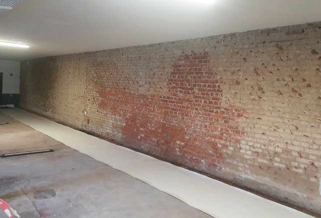 Das Parkdeck in Dortmund, das von zwei benachbarten Hotels gemeinsam genutzt wird, zeigte deutliche Feuchtigkeitsschäden an der Trennwand zwischen den Ebenen +1 und -1. Diese Wand, die ursprünglich ohne Horizontalsperre errichtet wurde, war im Laufe der Jahre durch Feuchtigkeit stark beeinträchtigt worden. Die Feuchtigkeit hatte sich in die Bausubstanz der Außenwand gezogen, was die strukturelle Integrität des Parkdecks gefährdete. Der Zustand des Parkdecks erforderte dringend eine Sanierung, um die Sicherheit und Nutzbarkeit wiederherzustellen. Die Herausforderung bestand darin, eine Lösung zu finden, die den weiteren Feuchtigkeitseintritt verhindert und die bestehende Bausubstanz schützt.